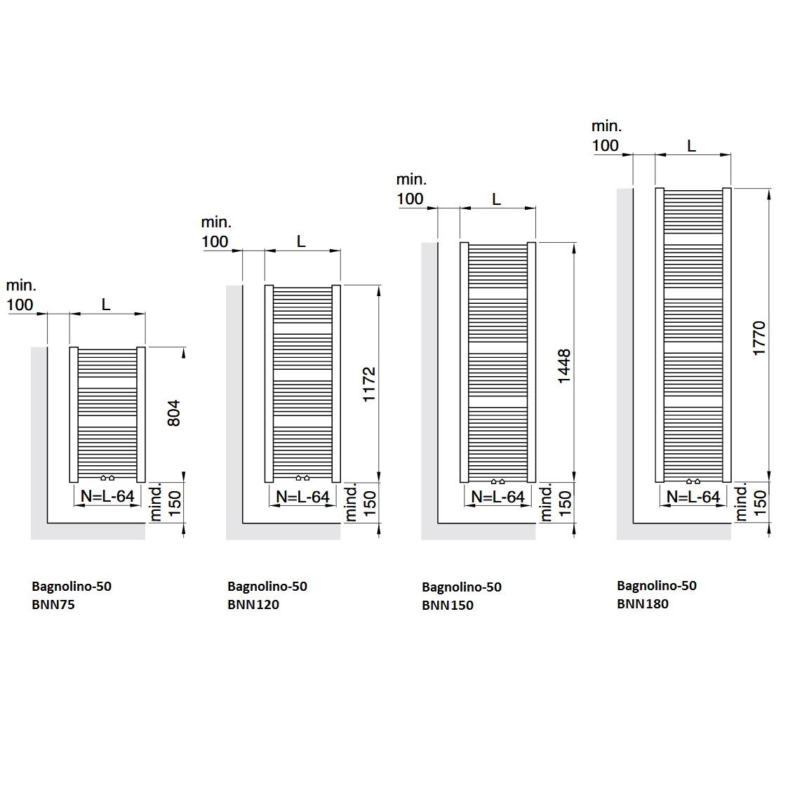 - 4 варіанти монтажної висоти: 804, 1172, 1448 та 1770 мм